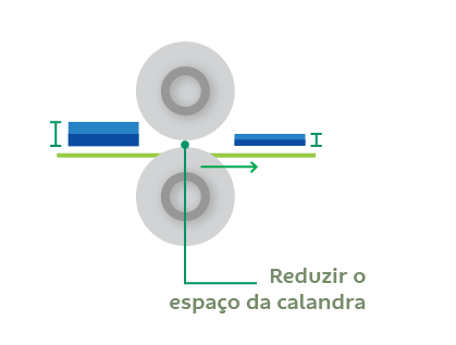 Reduza o espaço da calandra lisa entre os cilindros superior e inferior para obter maior compressão do pad. Isso proporciona um incremento de até 5% na densidade do produto final, melhorando em até 25% a integridade do pad.